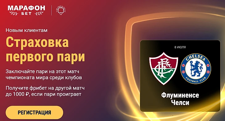 Букмекер «Марафон» предлагает новым клиентам уникальную возможность застраховать свою первую ставку на матч Клубного чемпионата мира по футболу 2025. Если ваше пари на поединок «Флуминенсе» – «Челси» окажется неудачным, вы получите фрибет на другой матч турнира.