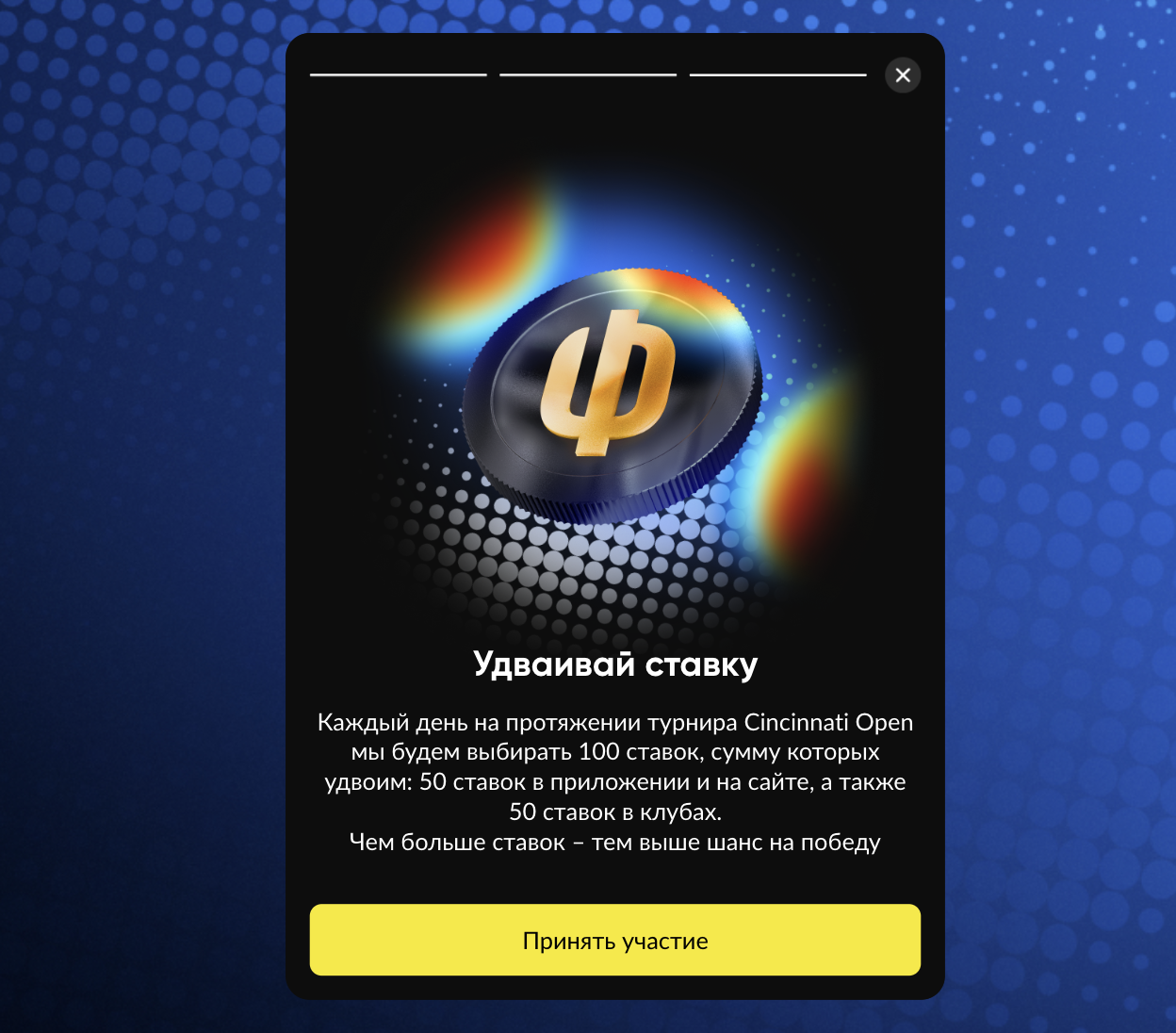 Акция доступна только в дни проведения турнира Cincinnati Open (7–19 августа);