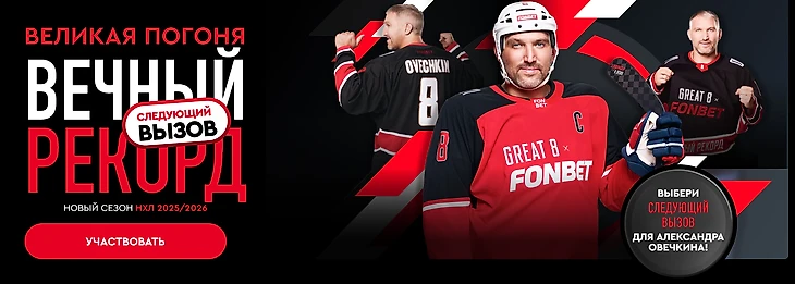 Не просто следите за великой погоней – станьте ее частью с FONBET! Зарабатывайте баллы на прогнозах, участвуйте в захватывающих активностях прямо сейчас и выигрывайте легендарные призы, пока Александр Овечкин продолжает свой путь к вечному рекорду. Заходите на страницу акции в личном кабинете FONBET и начните свою погоню сегодня!