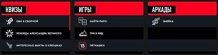 «Тренируйся как Ови!» (Видеоквиз): Смотрите специальные видео с подсказками, отвечайте на вопросы и делайте ставки от 500 ₽ с коэффициентом от 1.80. Трое самых быстрых участников, верно ответивших на все вопросы, выиграют поездку в Москву на тренировки с тренером Овечкина.