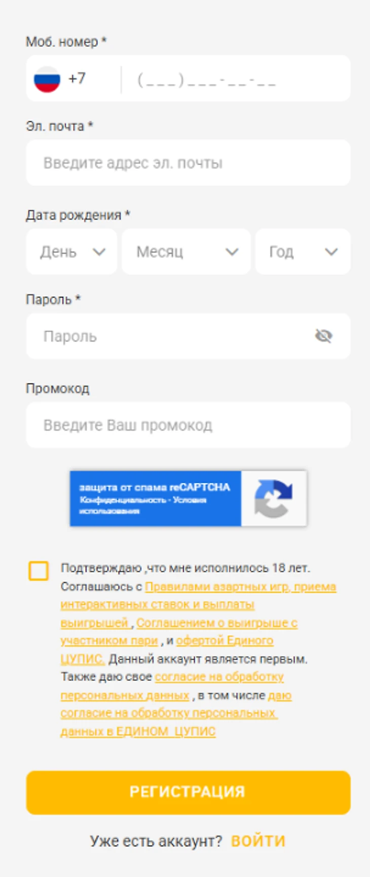 Если у вас нет учетной записи, надо заполнить регистрационную анкету: