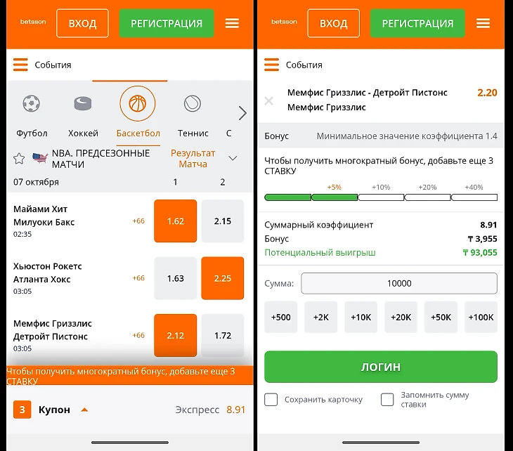 Участие в VIP-клубе не требует специальных действий – достаточно авторизоваться на сайте Betsson или в мобильном приложении и заключать пари на спорт или киберспорт с коэффициентом не ниже 1.30. В зачет идут одиночные ставки, экспрессы или пари формата «система», а также пари в формате Bet Builder и даже ставки с опцией раннего расчета, если они сделаны на реальные средства. Важно помнить, что ставки, сделанные за счет бонусов (фрибеты, безрисковые пари, другие бонусы на балансе), не учитываются при расчете прогресса.