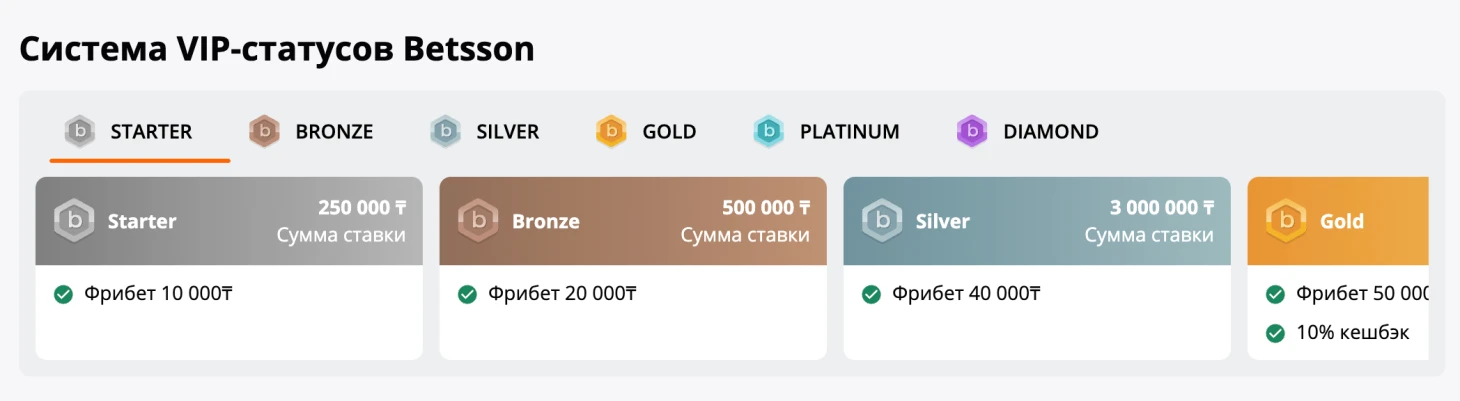 – Этот уровень для самых активных участников Betsson, которые получают максимум преимуществ и эксклюзивные бонусы.