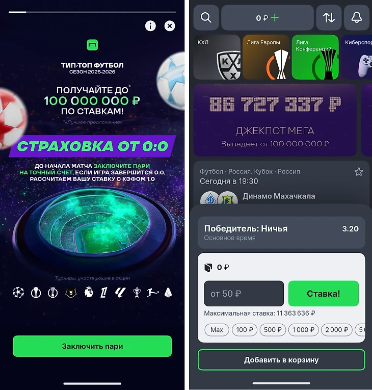 Далее необходимо заключить ставку на точный счет предстоящего матча в одном из указанных турниров. Дополнительных условий, вроде промокодов или специальных регистраций, не требуется. Все, что нужно – выбрать исход «Точный счет» и оформить пари до начала игры. Если встреча завершится 0:0, ставка возвращается в полном объеме (за исключением прогноза на сам нулевой результат).