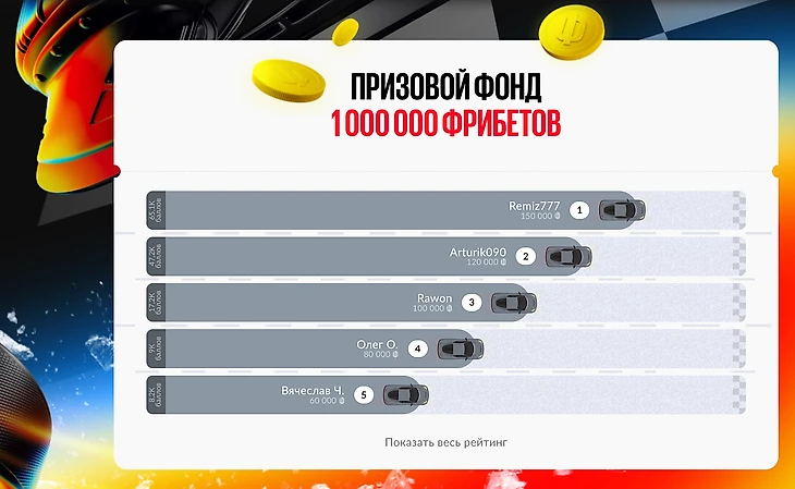 Призовой фонд составляет 1 000 000 рублей, которые распределяются среди 100 участников: