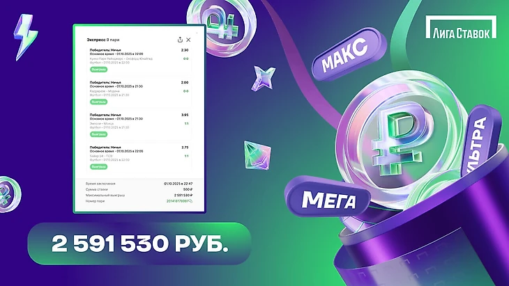 Игрок «Лиги Ставок» составил экспресс из 9 матчей и превратил 500 рублей в 2 591 530 рублей