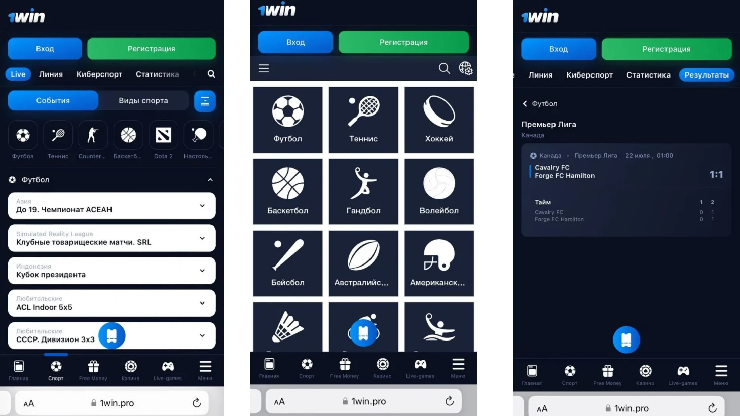 Для пользователей, предпочитающих мобильные устройства, у 1Вин есть мобильная версия и приложения на iOS и Android. Мобильная версия доступна по тому же адресу, что и основной сайт. Навигационное меню со всеми разделами находится справа вверху, а с нижней панели можно перейти к лайв-ставкам, в казино или к Live-games. Также здесь расположен купон ставок.