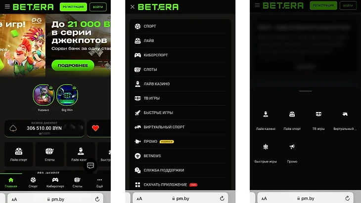Адрес официального сайта белорусского букмекера Betera – pm.by. Придя на смену бренду «Париматч», новая контора не стала менять платформу, а лишь слегка изменила интерфейс. Если ввести в адресной строке браузера betera.by, произойдет переадресация на действующий официальный сайт Betera.