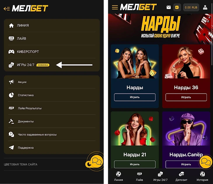 Среди вариантов для заключения пари есть и более эксклюзивные виды. «Мелбет» предлагает своим пользователям несколько разновидностей быстрых игр. Основное преимущество такого вида беттинга – скорость расчета заключенного пари. Каждая из игр проходит в формате до 60 секунд, что может позволить клиенту БК приумножить свой банк буквально за считанные минуты. На данный момент «Игры 24/7» ограничены одной дисциплиной – нардами. Однако пользователи могут сделать выбор среди разновидностей игры в нарды.
