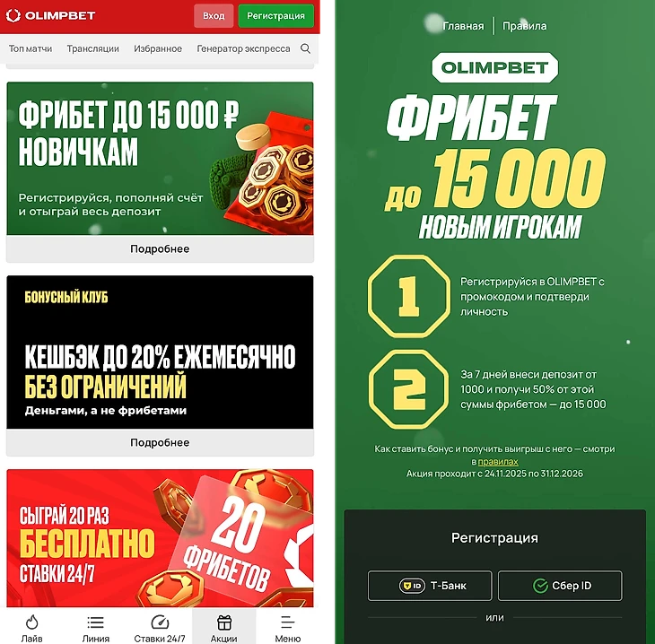 Букмекерская контора OLIMPBET предлагает всем новым игрокам приветственный фрибет до 15 000 рублей. Чтобы воспользоваться предложением, необходимо выполнить следующие действия: