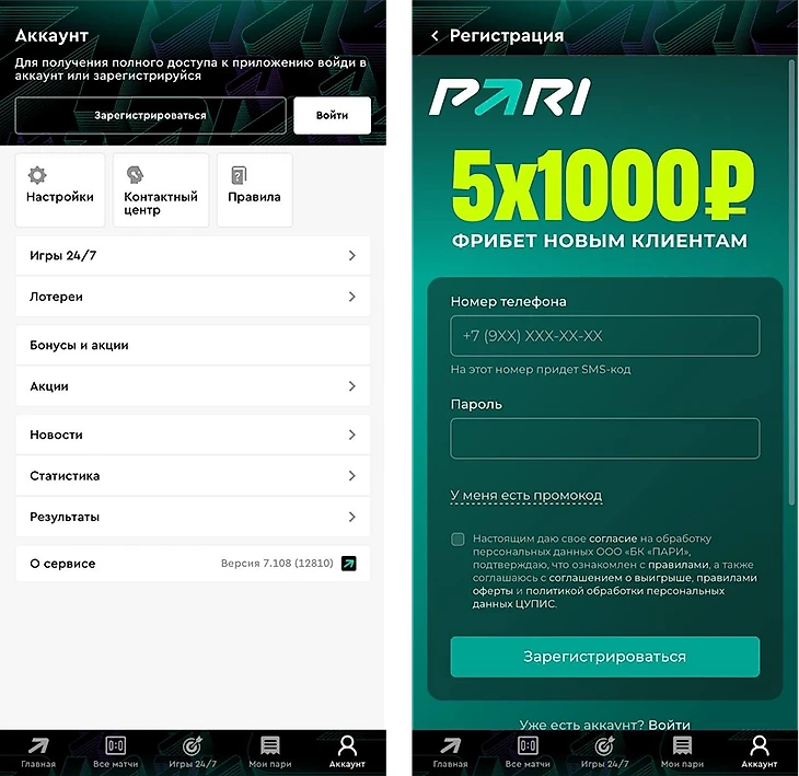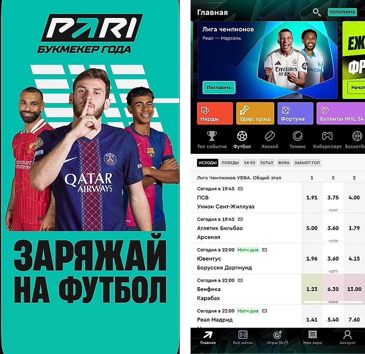 Зарегистрироваться на официальном сайте БК PARI или в официальном мобильном приложении букмекера.
