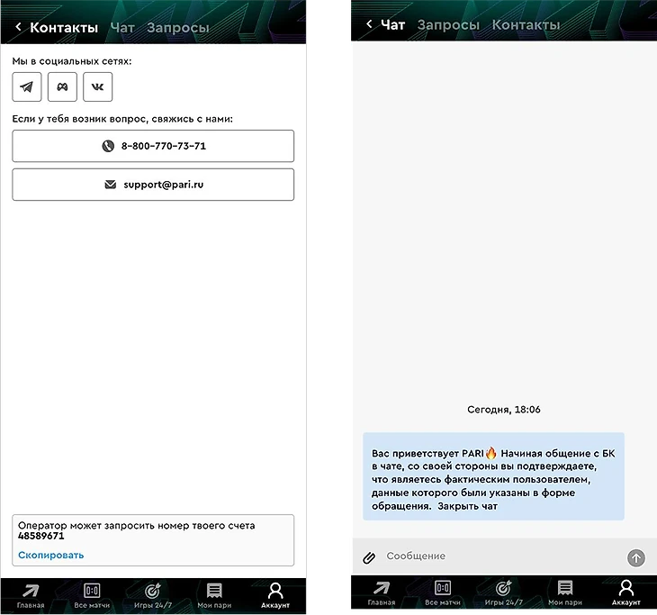 Способы связи с оператором техподдержки букмекерской конторы Pari: