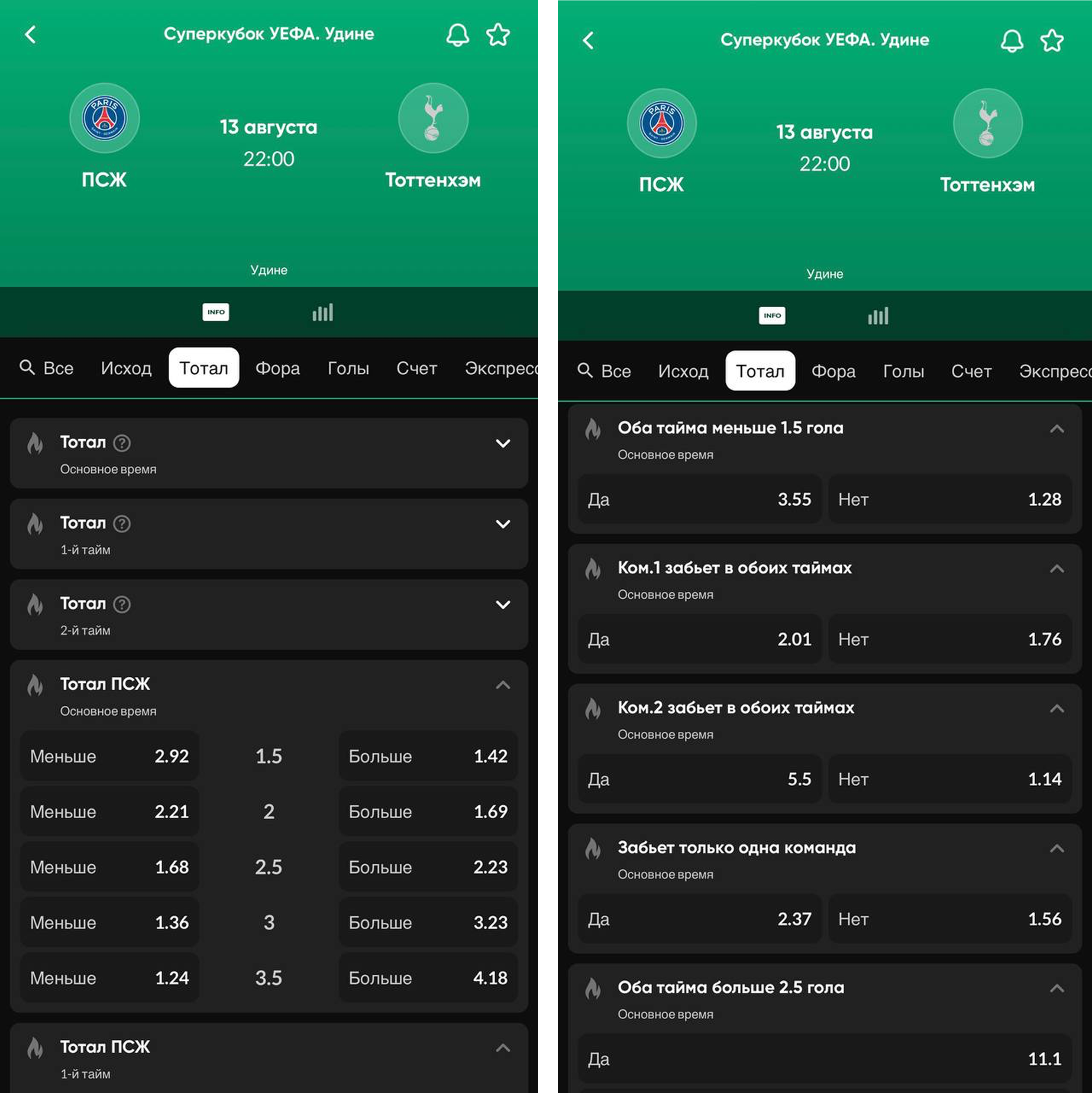 индивидуальный тотал 1-го/2-го ();