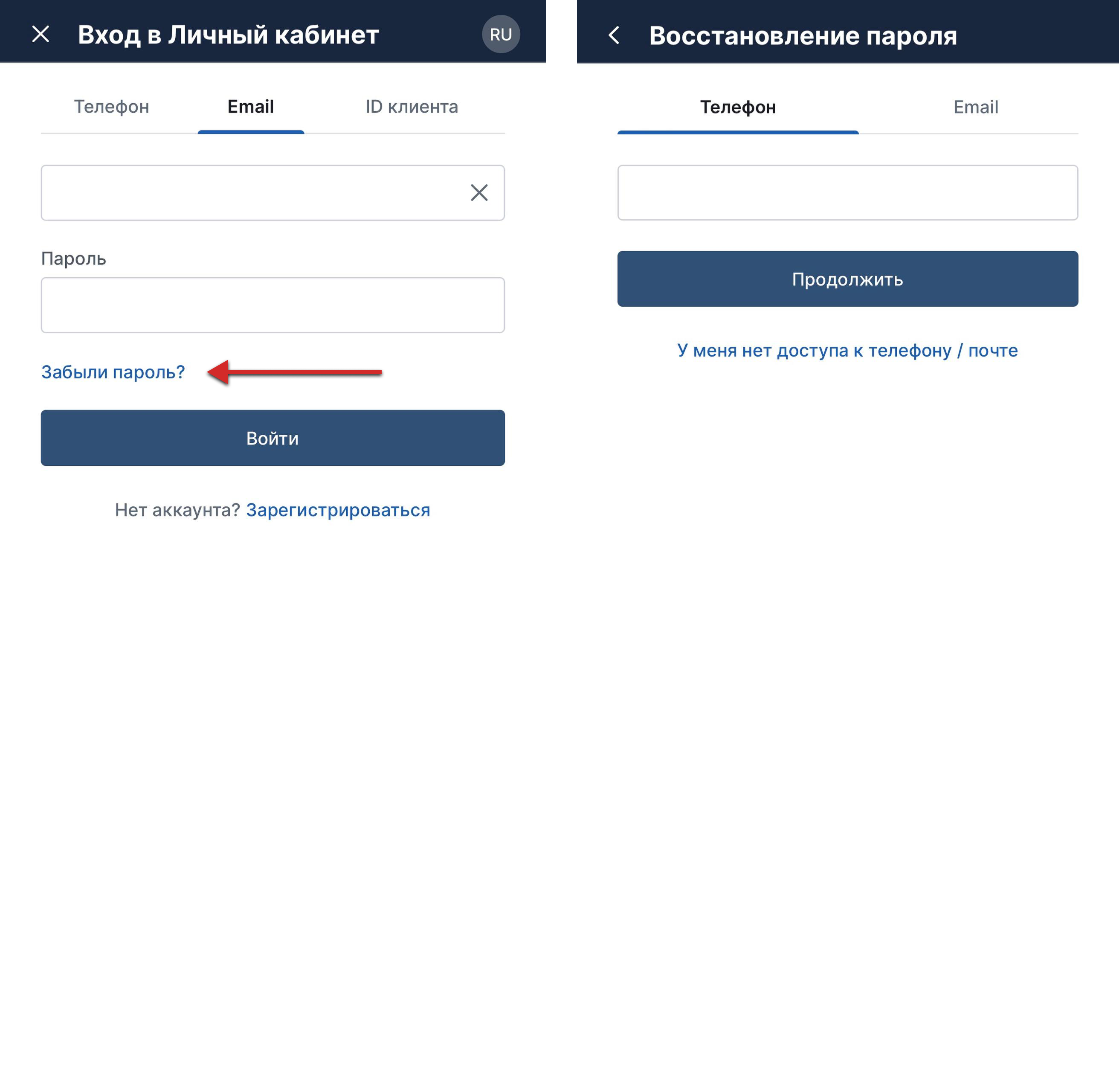 — Нажмите на текст «Забыли пароль?» вас перекинет на страницу восстановления пароля, где будут предоставлены 2 способа восстановления: через номер телефона и адрес электронной почты;