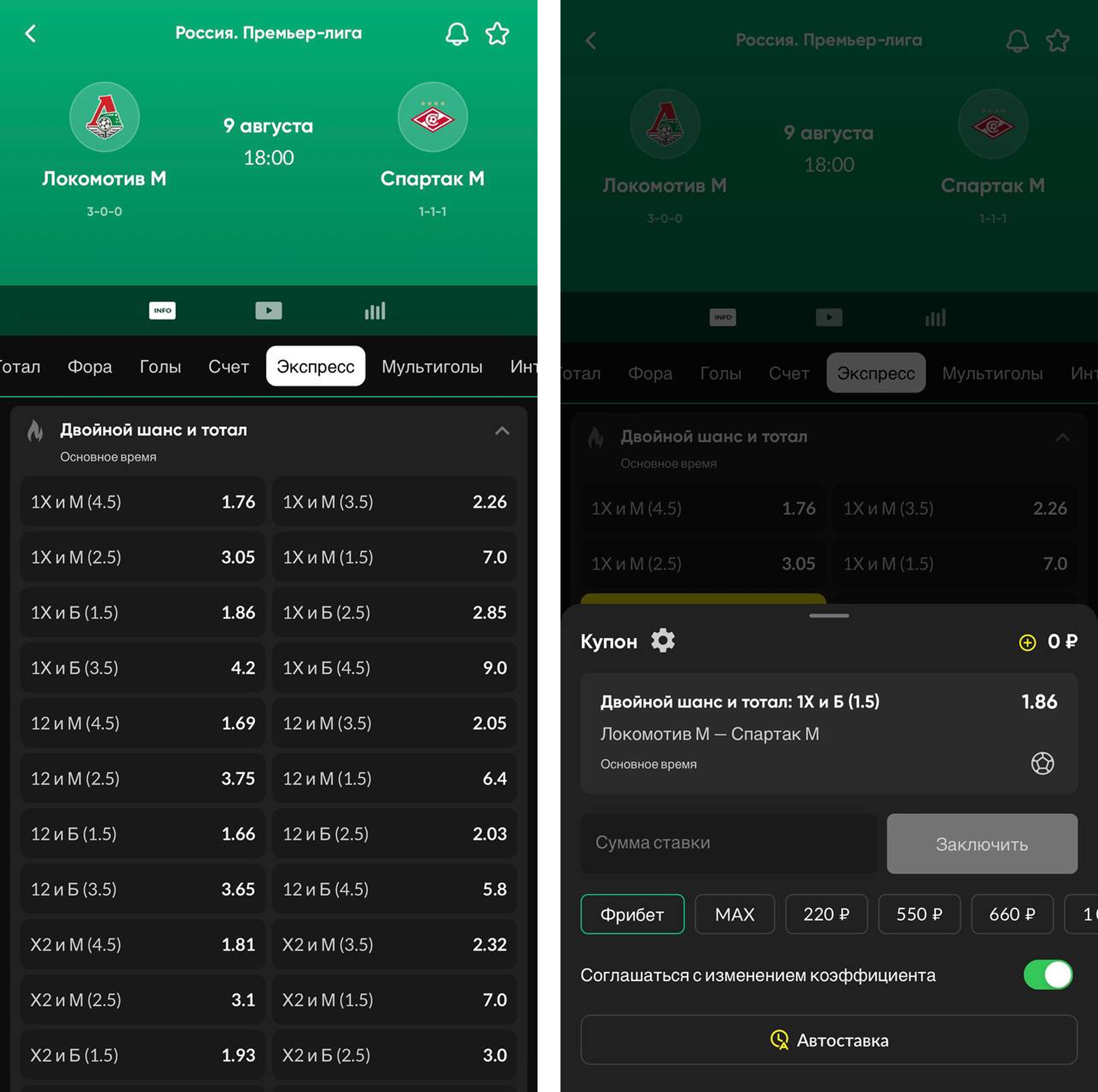 В случае с добавление второго события в купон, только положительного исхода по тоталу недостаточно. Для прохода ставки необходимо угадать оба результата. Например, ставка 1Х + ТБ 1,5 в матче «Локомотив» — «Спартак». Если обе команды забьют и матч завершится с ничейным счетом 1:1 или хозяева победят 2:0, 2:1, 3:0 и так далее, то пари успешно сыграет. Но если сильнее окажутся гости, матч завершится нулевой ничьей или «Локомотив» победит 1:0, то в этих случаях пари проиграет.
