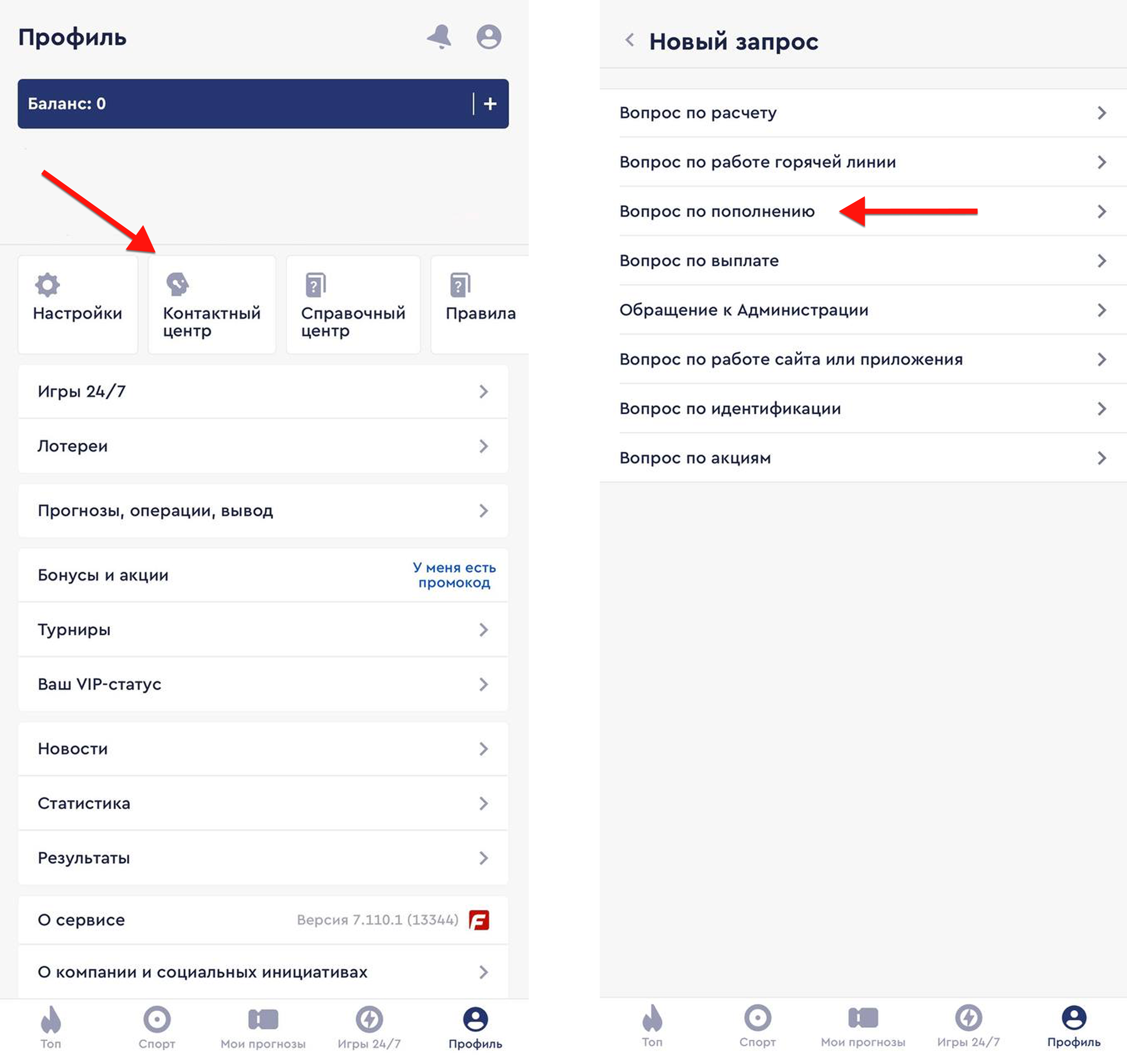 Зайдите в раздел «Профиль» ➟ «Контактный центр».