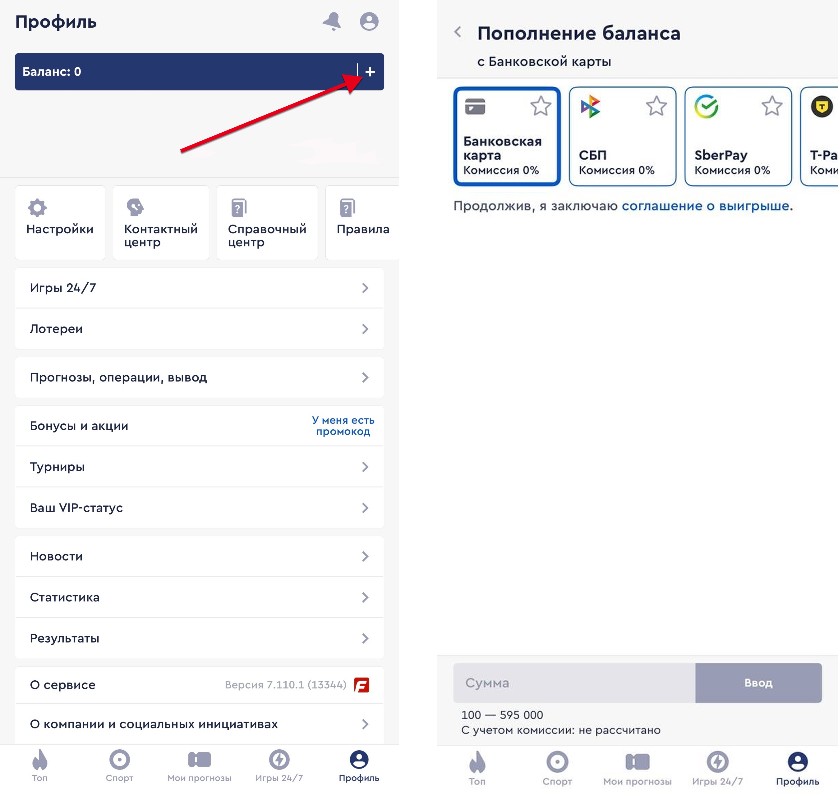 Зайдите в приложение и перейдите в раздел «Профиль» ➟ «Пополнить».