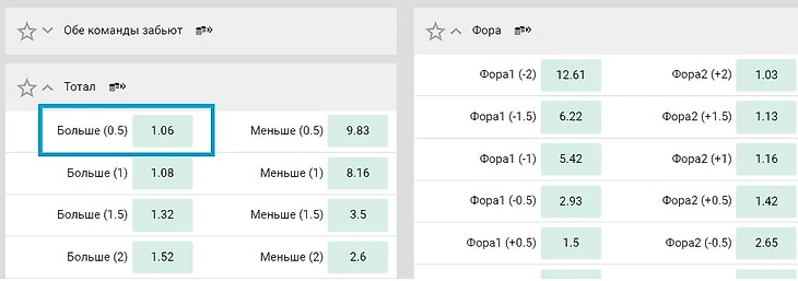 Она основана на вероятности хотя бы одного гола в течение выбранного тайма. Для использования этой методики необходимо тщательно выбирать игры, отдавая предпочтение чемпионатам с высокой результативностью. Ставка делается на ТБ 0,5 в первом тайме, как правило, с коэффициентом в пределах 1.20-1.60. Если такой исход недоступен в прематче, можно дождаться начала матча и сделать ставку в лайве. Число одновременно заключаемых пари и охват матчей зависят от размера вашего банкролла.