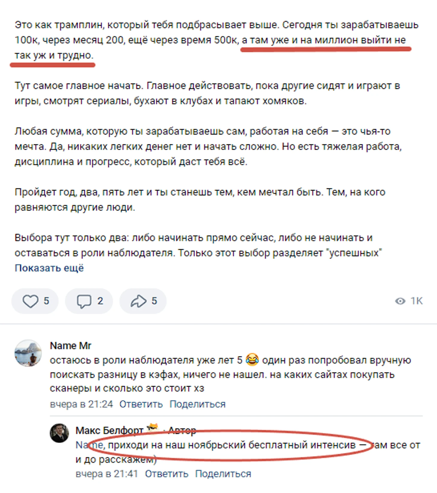 Обещают золотые горы, постят фоточки за рулём арендованных Ламборджини и в съёмных апартаментах. Они преследуют одну единственную цель: убедить вас в реальности и простоте заработка и впарить вам своё «обучение».