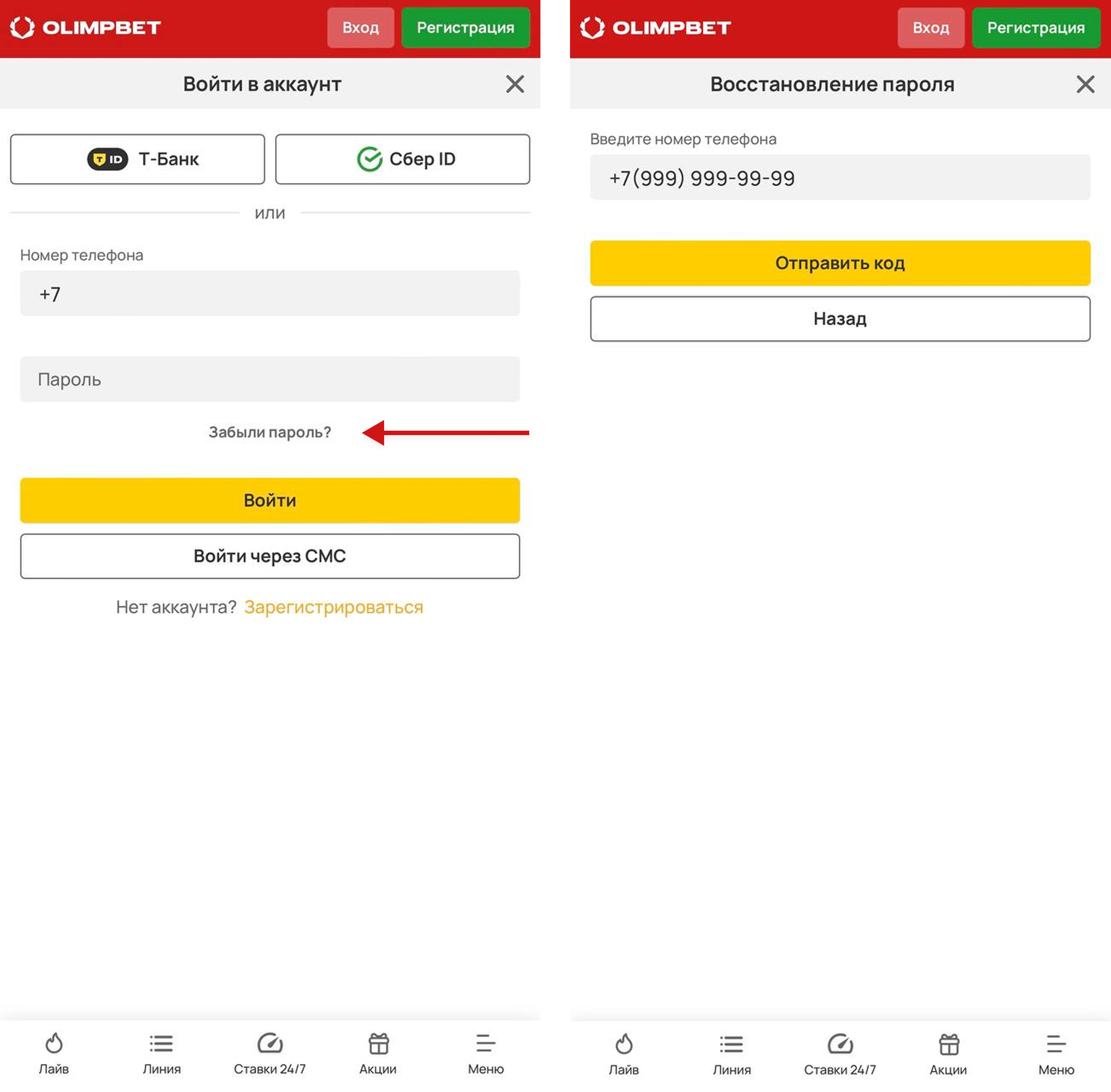 Если вы забыли пароль в OLIMPBET, выполните следующие шаги: