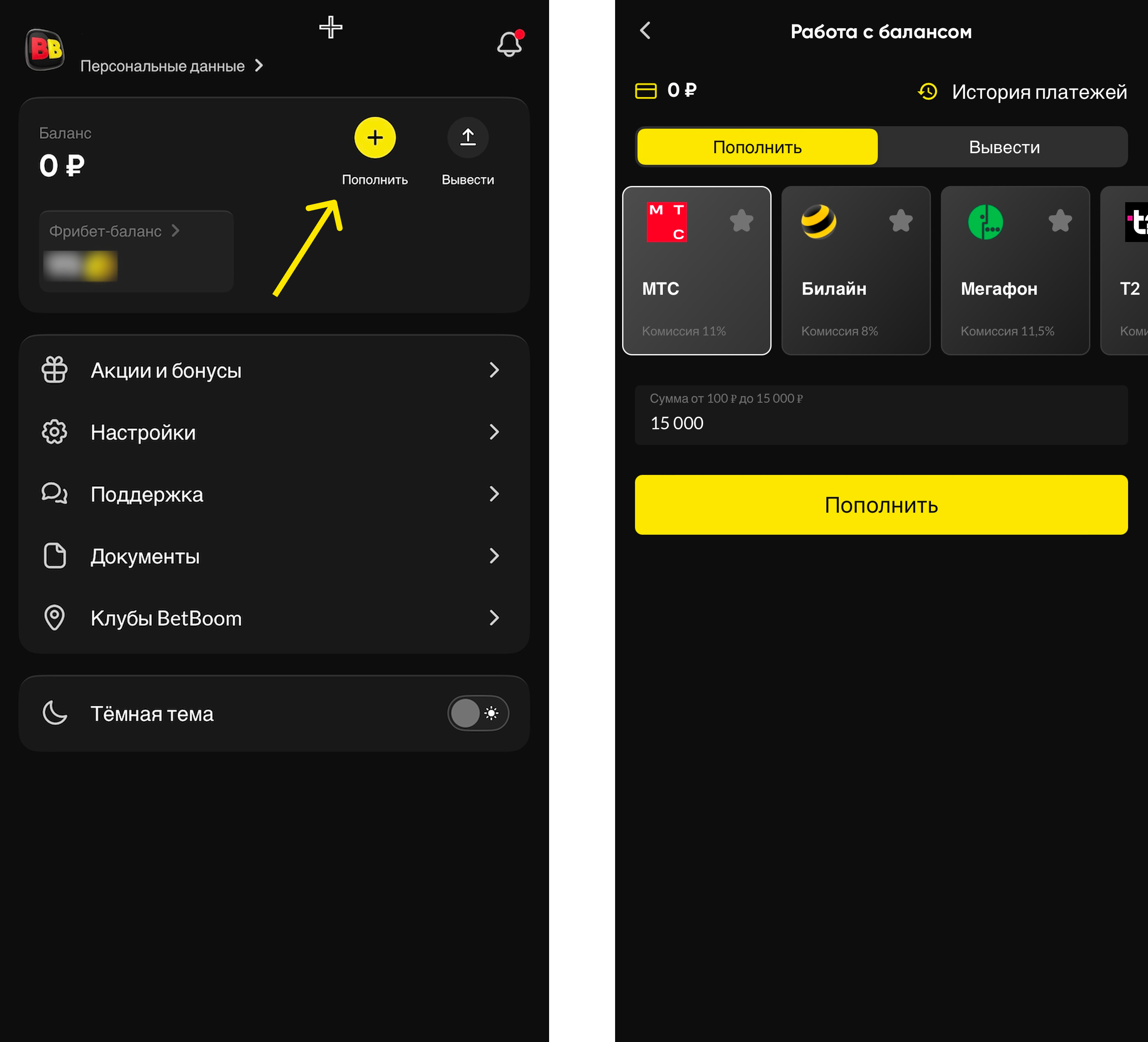 Пополнение счета (баланса) в букмекерской конторе BetBoom простой и удобный процесс, особенно, если вы используете свой мобильный телефон.