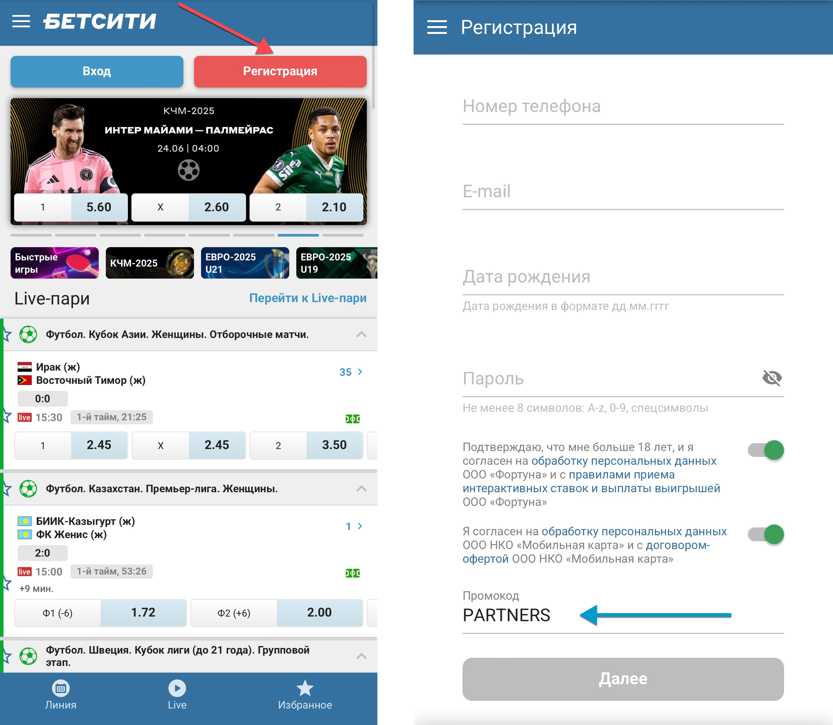 Как зарегистрироваться в мобильной версии сайта «БЕТСИТИ»?