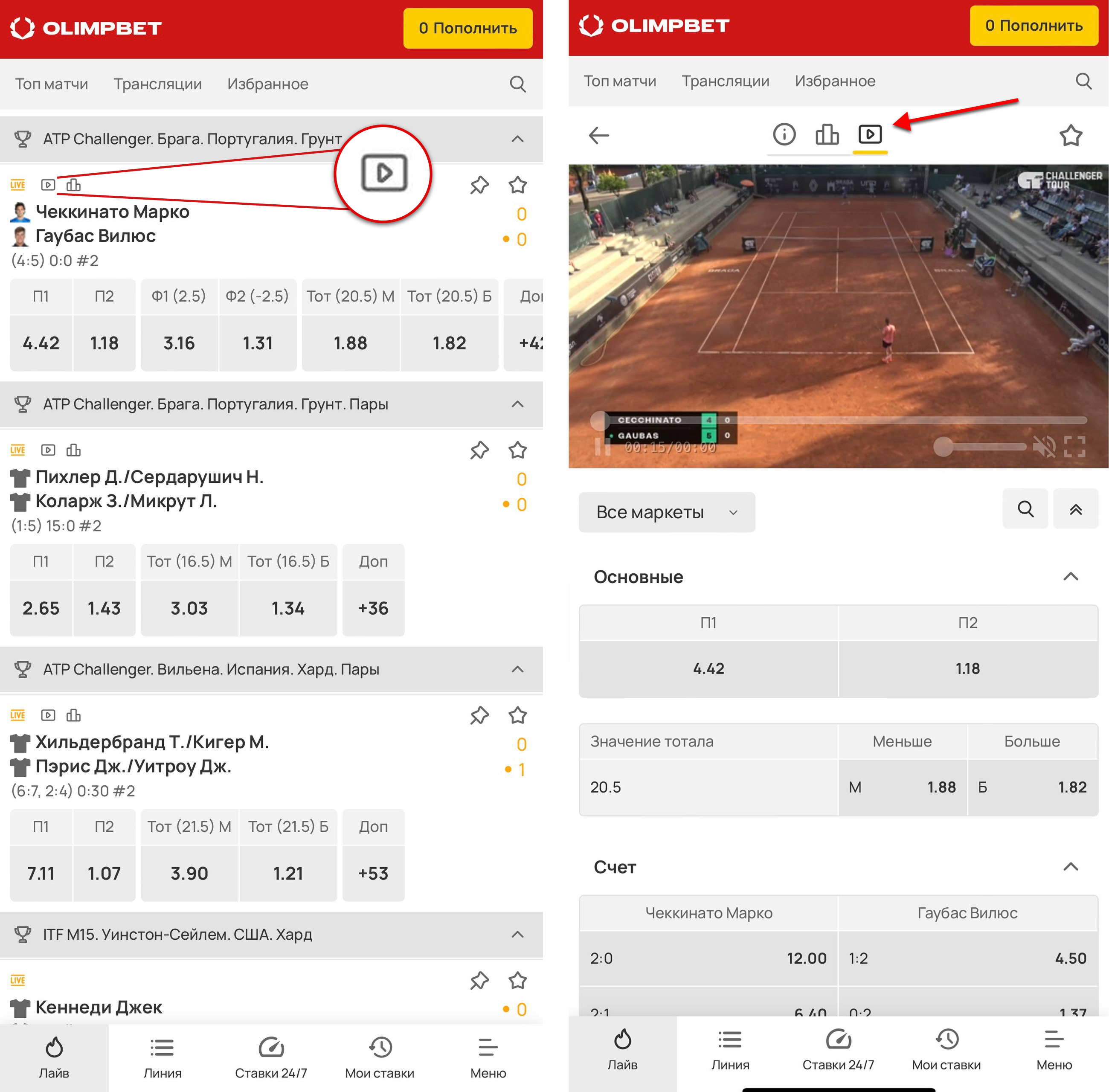 Как смотреть прямую трансляцию на сайте OLIMPBET
