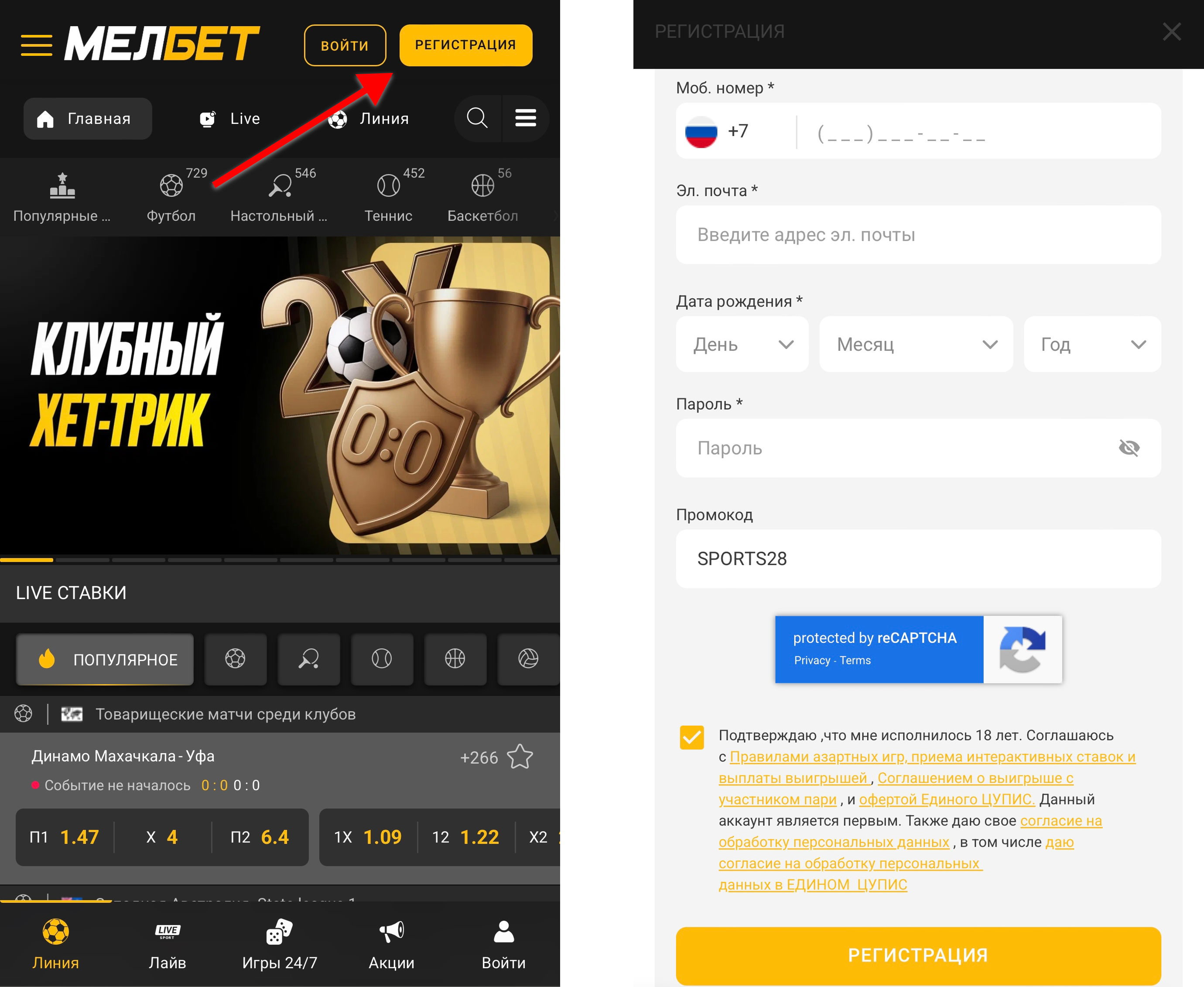 Регистрация в букмекерской компании «Мелбет» – нетрудный набор действий, который позволит полноценно погрузиться в мир беттинга, пользуясь главными функциями платформы – заключением пари, просмотром прямых трансляций, получением бонусов и многим другим.