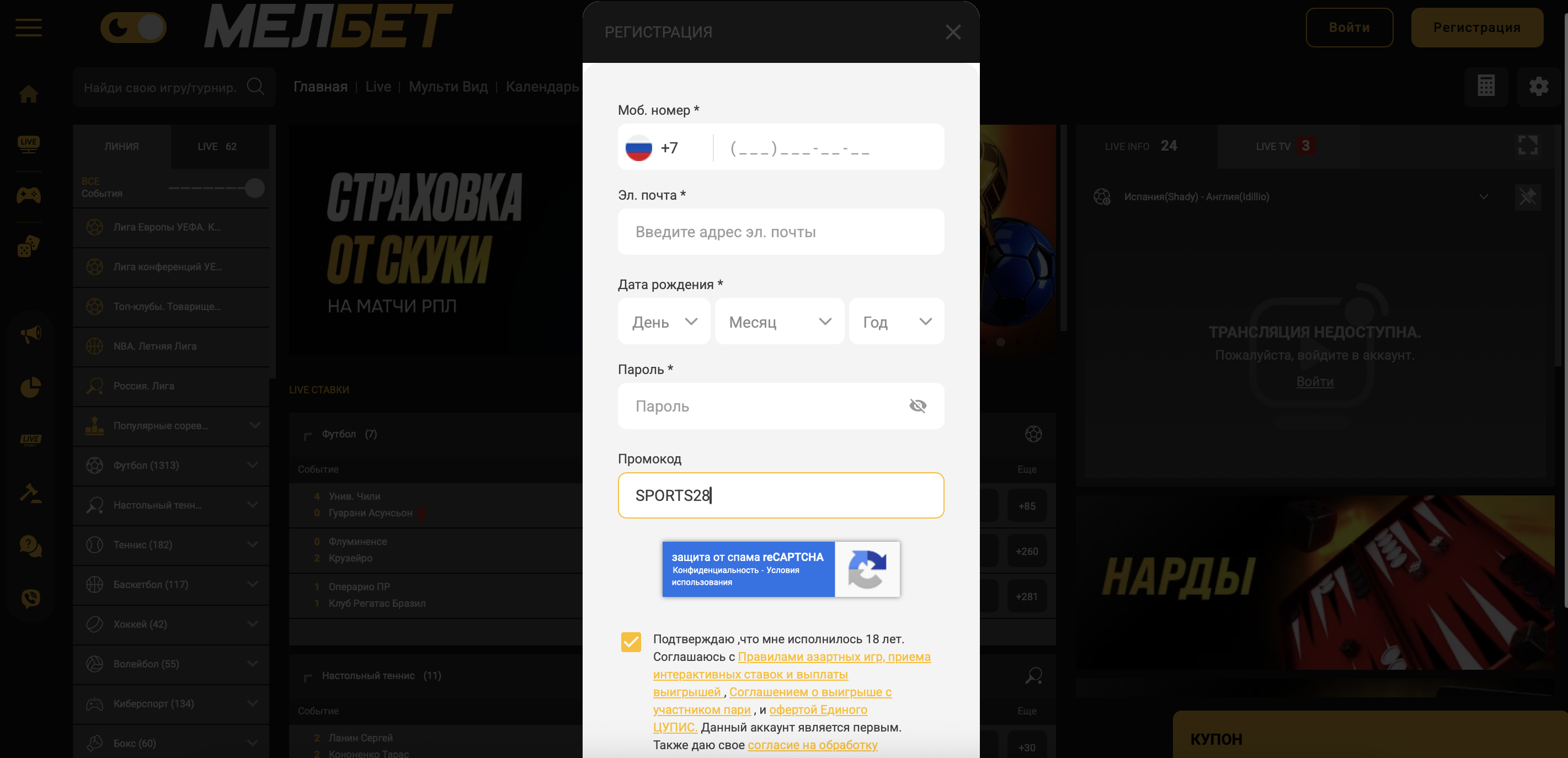 Введите промокод SPORTS28, он активирует специальный бонус.