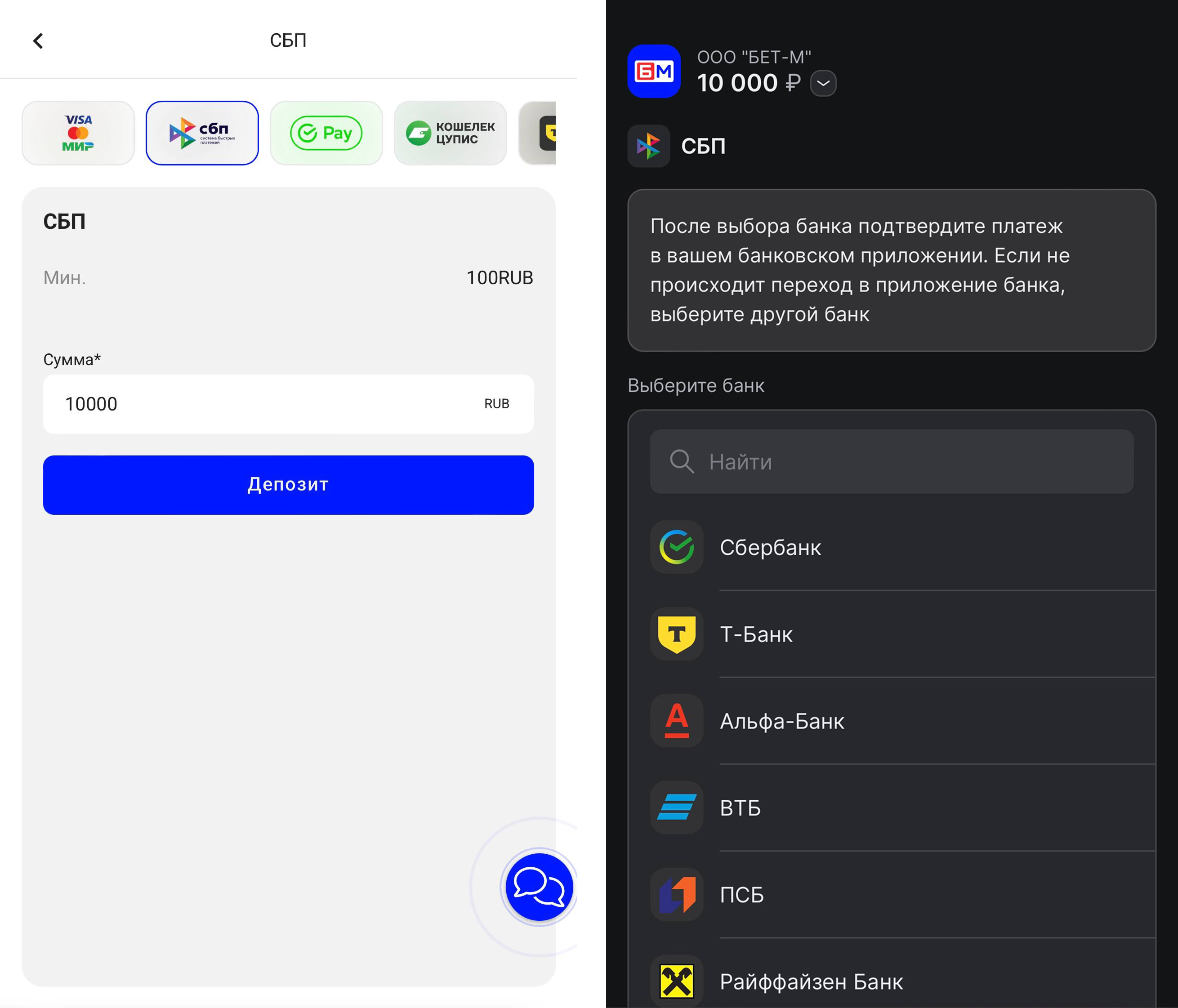 В «Бет-М» представлены следующие варианты для внесения депозита:
