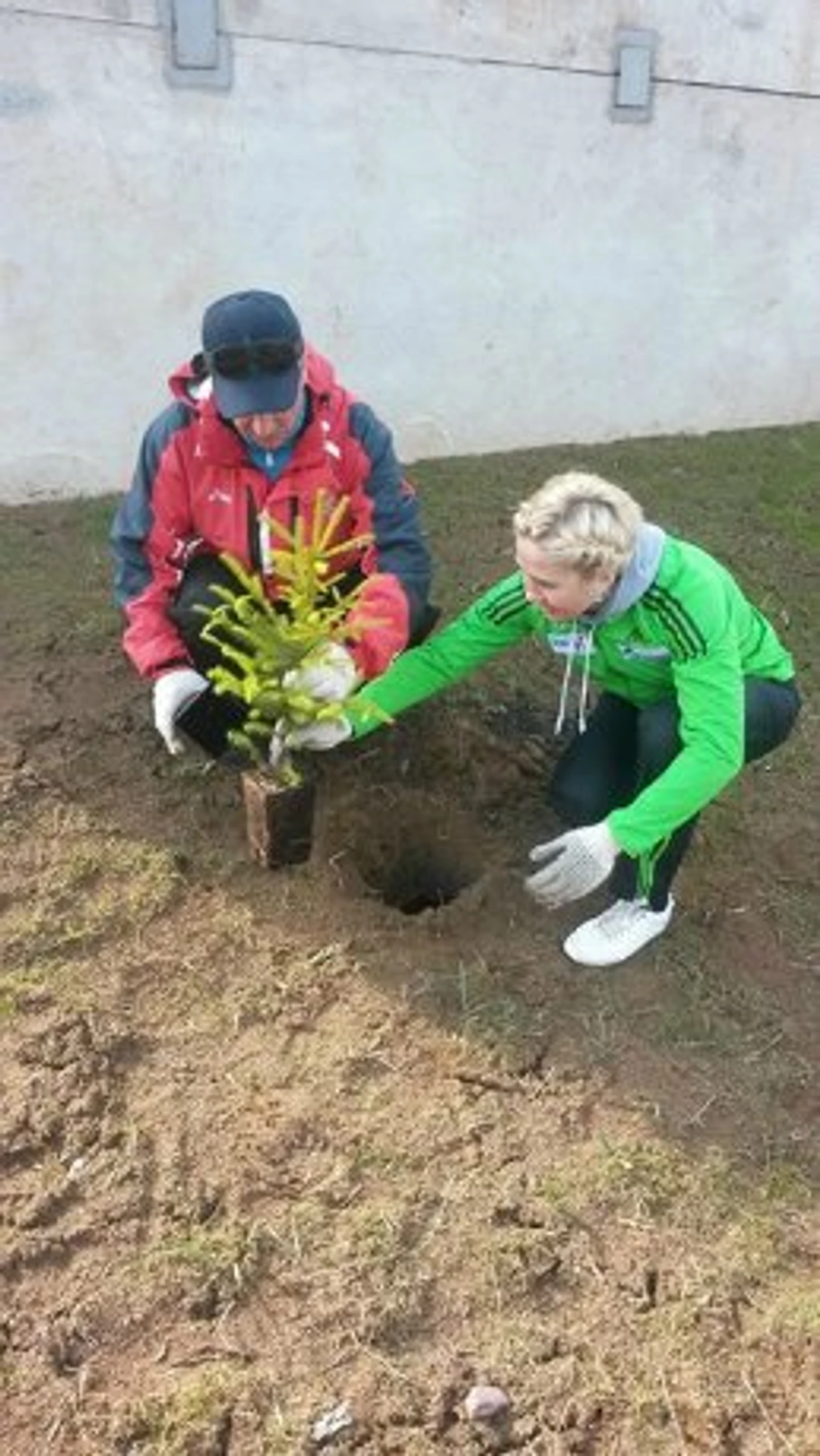 «Наконец-то я побывала в своем родном Тихвине. В один из двух дней мой первый тренер Андрей Горячев пригласил меня высадить одну из елочек на новом биатлонном комплексе. Комплекс, конечно, поражает своими масштабами.
