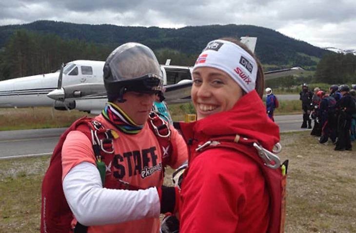 Норвежские биатлонистки прыгали с парашютом на сборе в Воссе