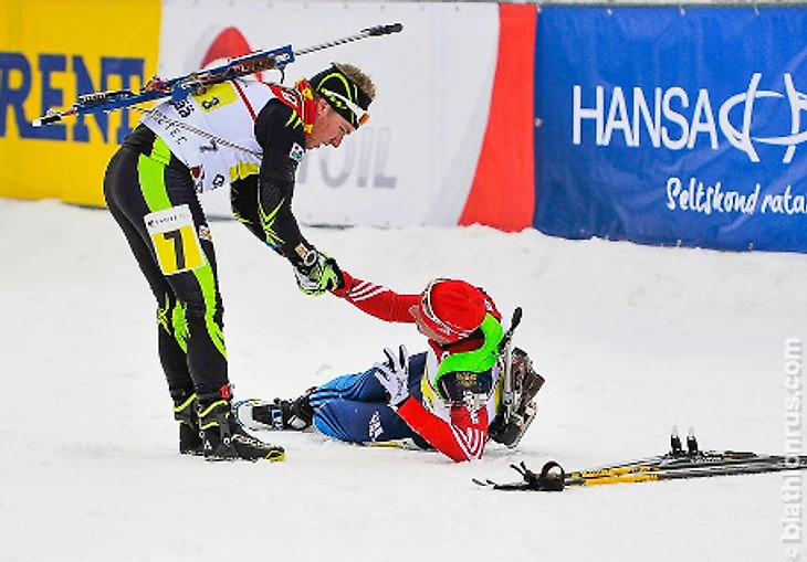 Сегодня на чемпионате Европы в эстонском Отепя состоялась смешанная эстафета среди юниоров. Победу одержала сборная России, за которую выступили Ульяна Кайшева, Виктория Сливко, Дмитрий Шамаев и Александр Поварницын.