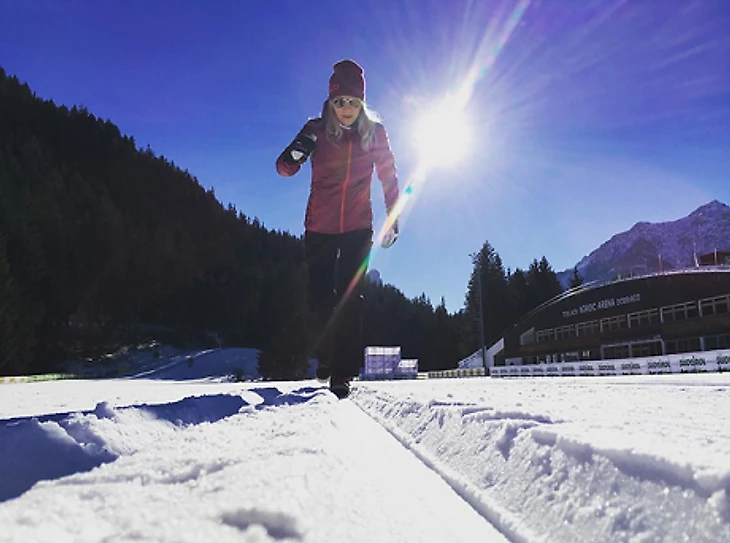 «Зима в Тоблахе прекрасна. Жаль, что о катании на лыжах я пока могу только мечтать.