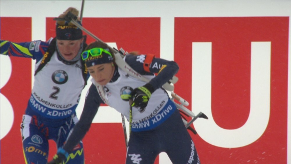 Гонщицы одновременно уходили с заключительной стрельбы, на повороте Дорен Абер попыталась обогнать Вирер и задела ее. Итальянка потеряла равновесие, но не упала.