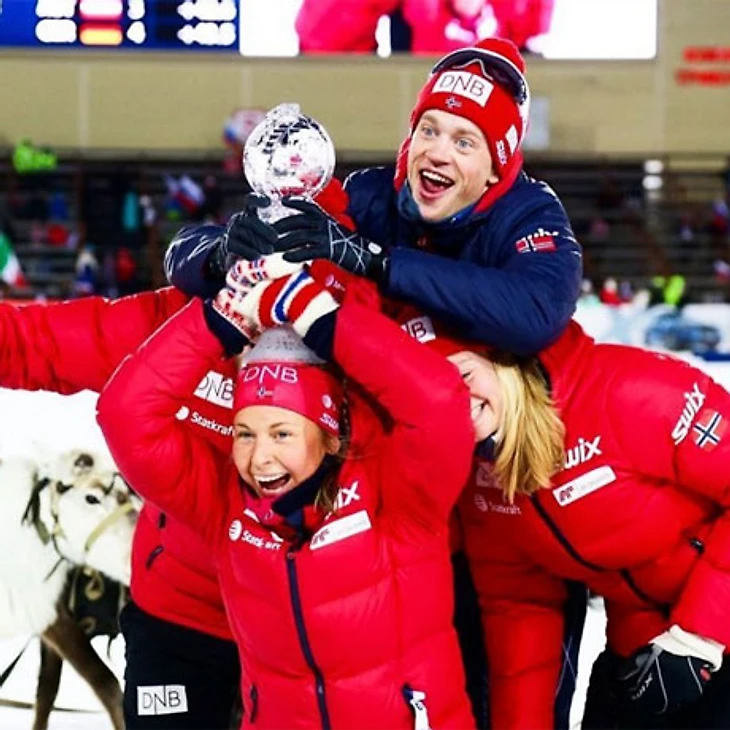 Норвежская биатлонистка Ингрид Ланмарк Тандревольд, дебютировавшая на этапе Кубка мира в Ханты-Мансийске, разделила радость команды при вручении Хрустальных глобусов по итогам прошедшего сезона.