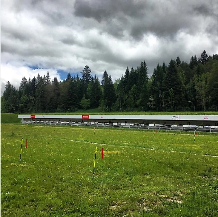 Французский биатлонист Мартен Фуркад провел тренировку на стрельбище.