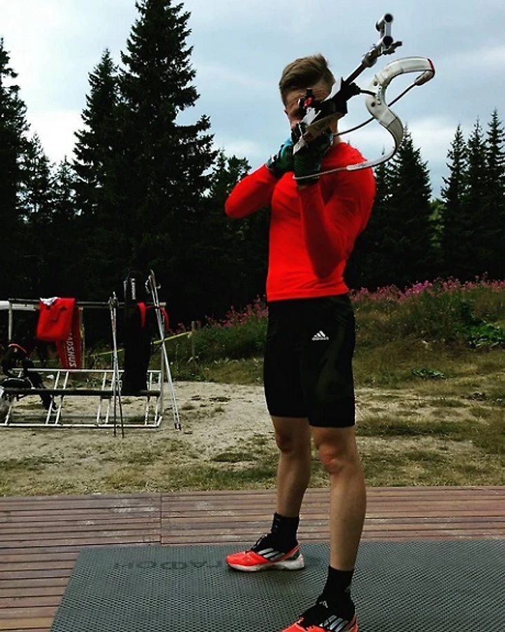 Российский биатлонист Тимофей Лапшин проводит тренировочный сбор в Болгарском Бельмекене.