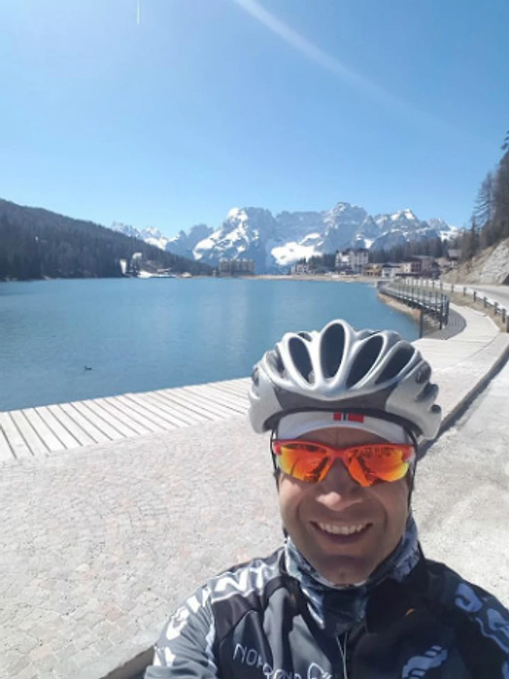 «Провел первую велотренировку в Доломитах. Немного холодно, но погода возле озера Мизурина была просто потрясающая», – написал Бьорндален.