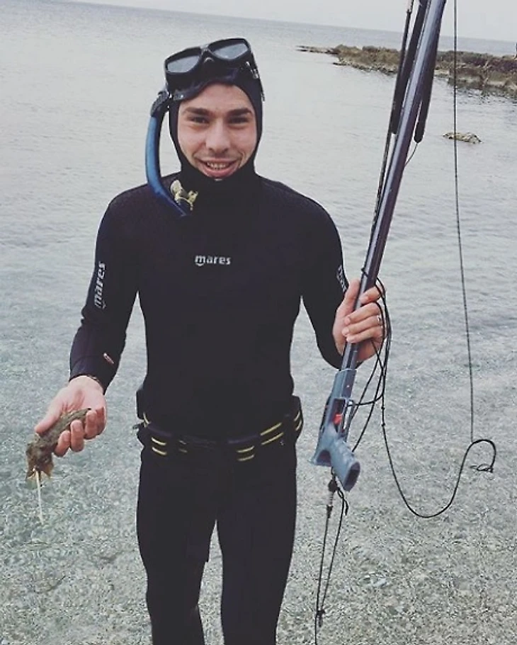 «Первый мой улов на подводное ружье! Жалко, конечно, кальмара, но азарт захлестнул...