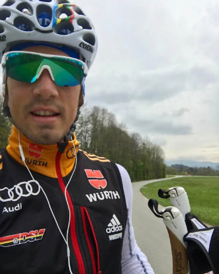Немецкий биатлонист Симон Шемп сообщил, что провел первую тренировку на лыжероллерах в межсезонье.