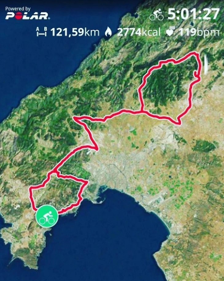 «Сегодняшняя тренировка. Более плоский маршрут, подъем высоты составил не более 1600 метров.