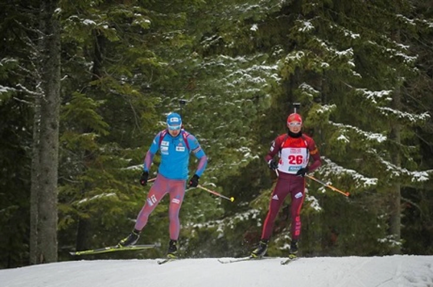 Экипировщиком сборной России по биатлону традиционно стала немецкая компания Adidas. Новый гоночный костюм выполнен в бордовом цвете.