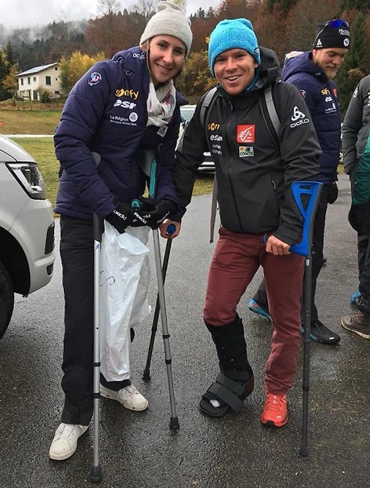Французский биатлонист Аристид Бегю сообщил, что травмировал ногу во время занятий скалолазанием.
