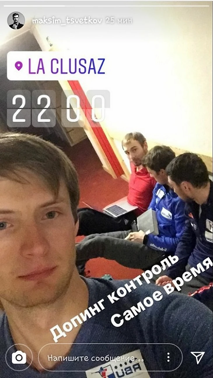 «22.00. Допинг-контроль. Самое время», – написал в своем инстаграме Максим Цветков.