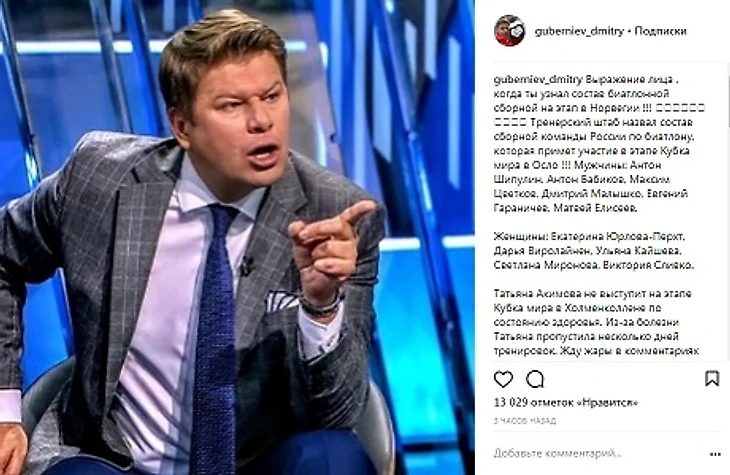 Жду жары в комментариях... Видимо, спортсмены-биатлонисты в России кончились», – написал Губерниев.