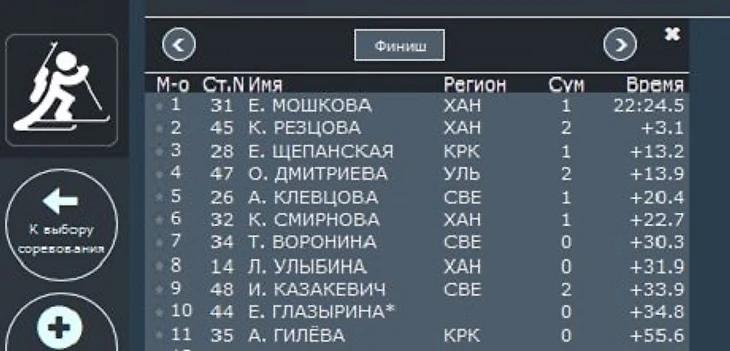 Результат Глазыриной (10-е место) фигурирует только в онлайн-системе СБР, но отмечен звездочкой.