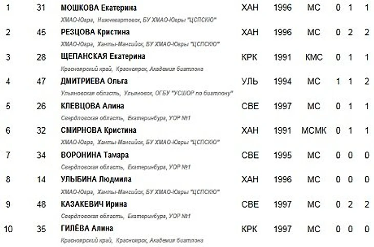 В новости с результатами спринта на сайте Союза биатлонистов России (СБР) Глазырина также не упоминается.