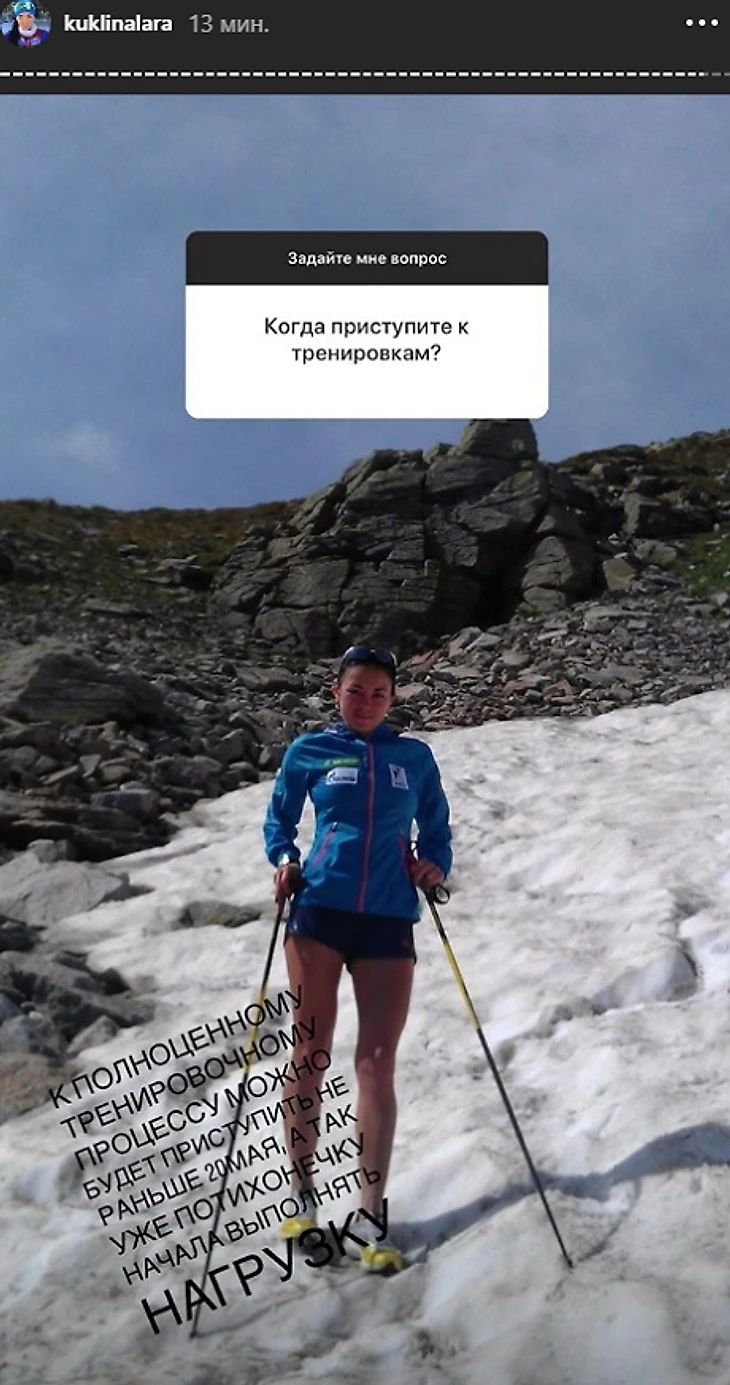 5. Лариса Куклина сообщила, что уже начала выполнять тренировочную нагрузку. 15 апреля биатлонистка перенесла операцию на носу.