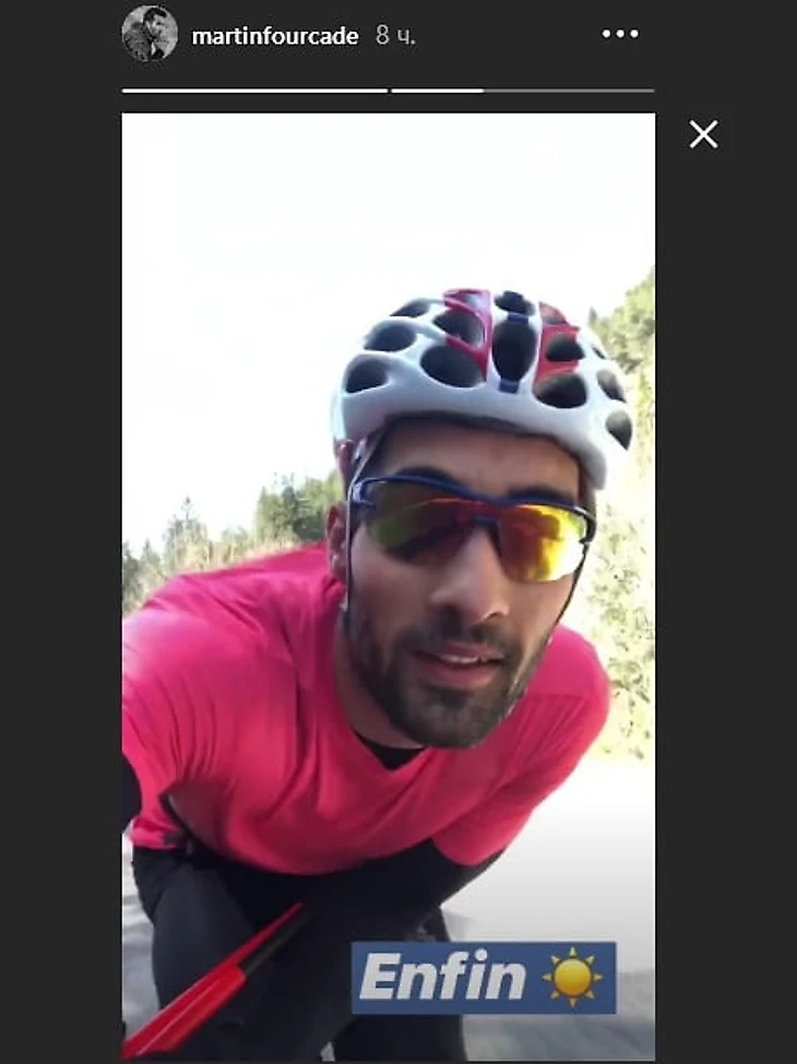 8. Мартен Фуркад провел тренировку на лыжероллерах.